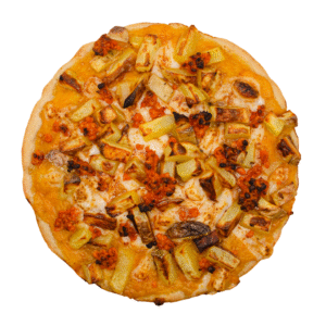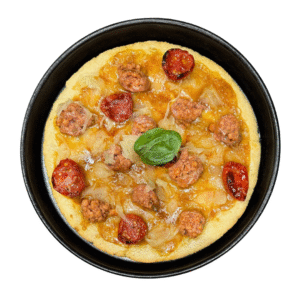 11.50€Formaggio Vegan affumicato (tipo scamorza), pomodorini confit, salsiccia Vegan, cipolla ...