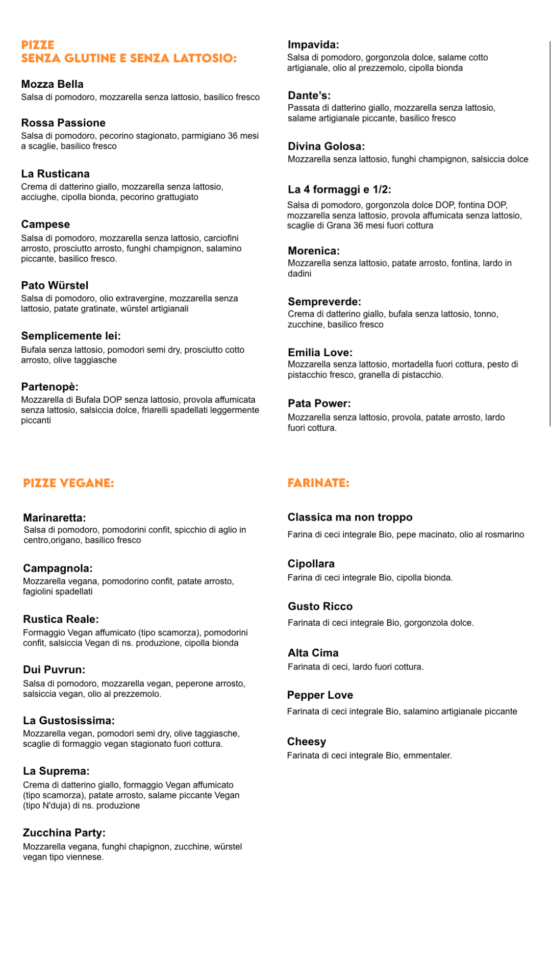Salsa di pomodoro, olio extravergine, mozzarella senza lattosio, patate gratinate, würstel artigianali